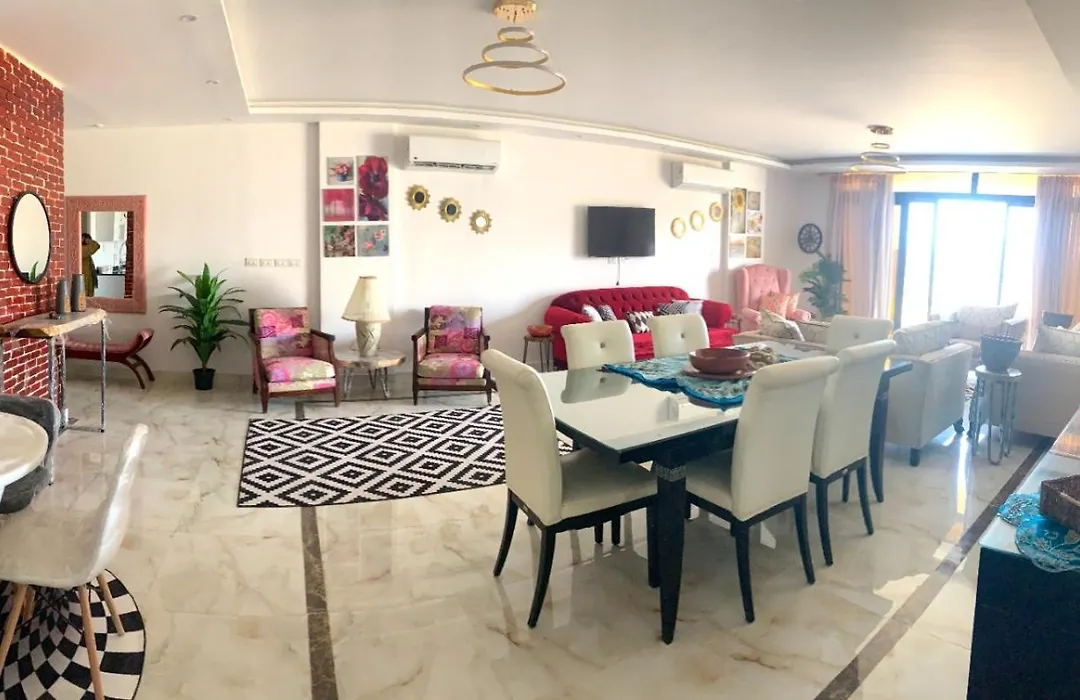 Overlooking the garden, spacious 3-bedroom Azad Compound - Opposite To The Auc And Midtown Mall - New Cairo apartment is nearly 20 minutes' walk from the independent English-language research American University in Cairo in Cairo. Guests can make use of Wi-Fi for both business and leisure purposes.